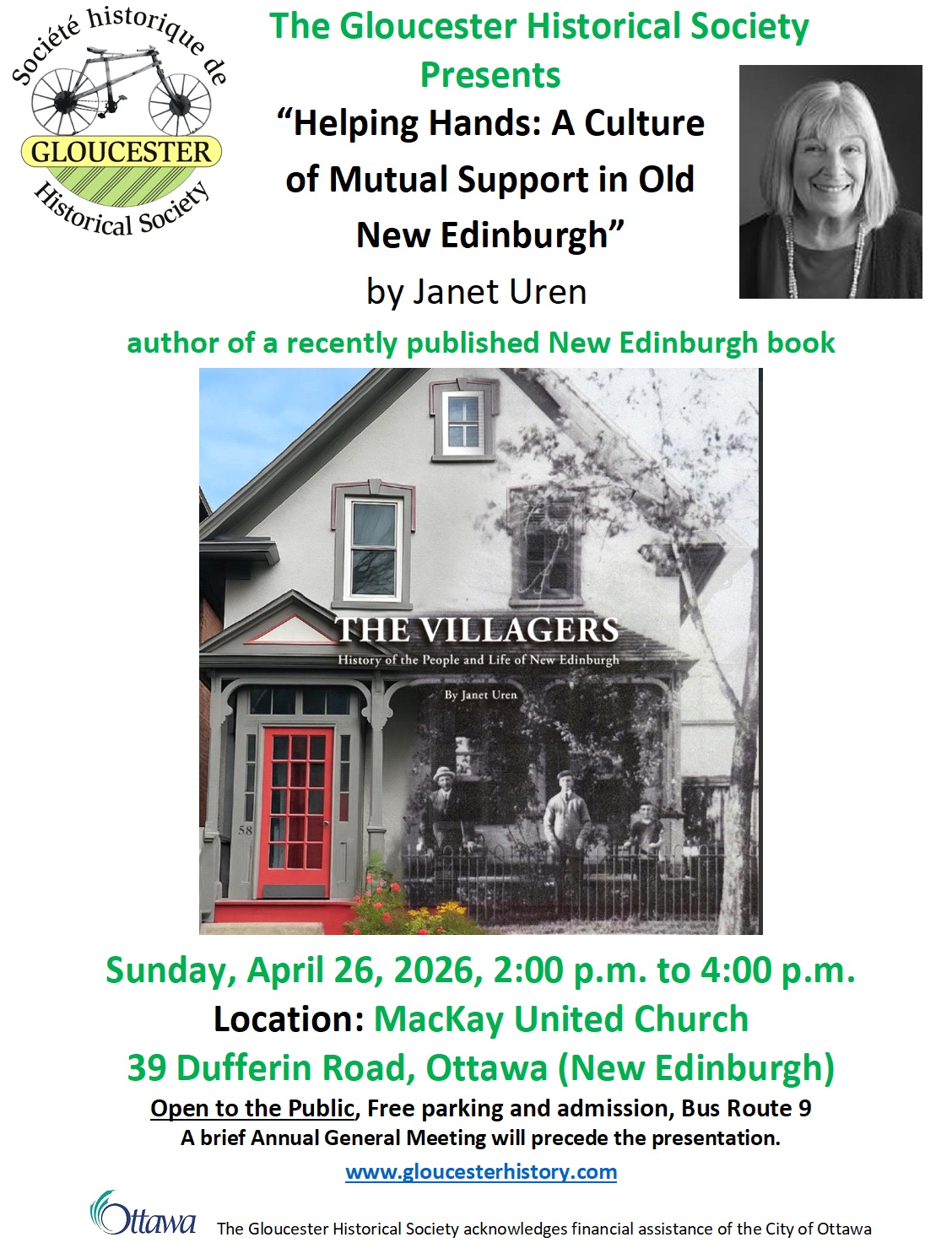the financial assistance of the City of Ottawa Copyright 2011-2026 Gloucester Historical Society. All Rights Reserved. |